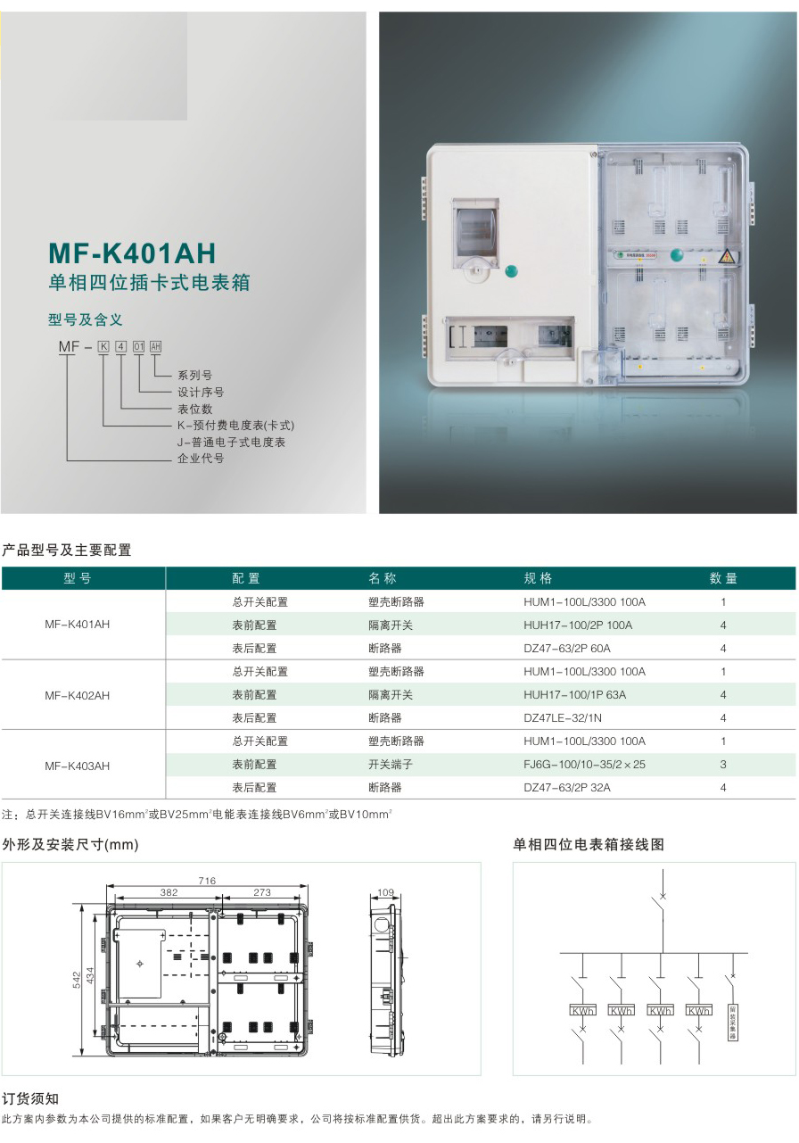 MF-K401AH 單相四位插卡式電表箱