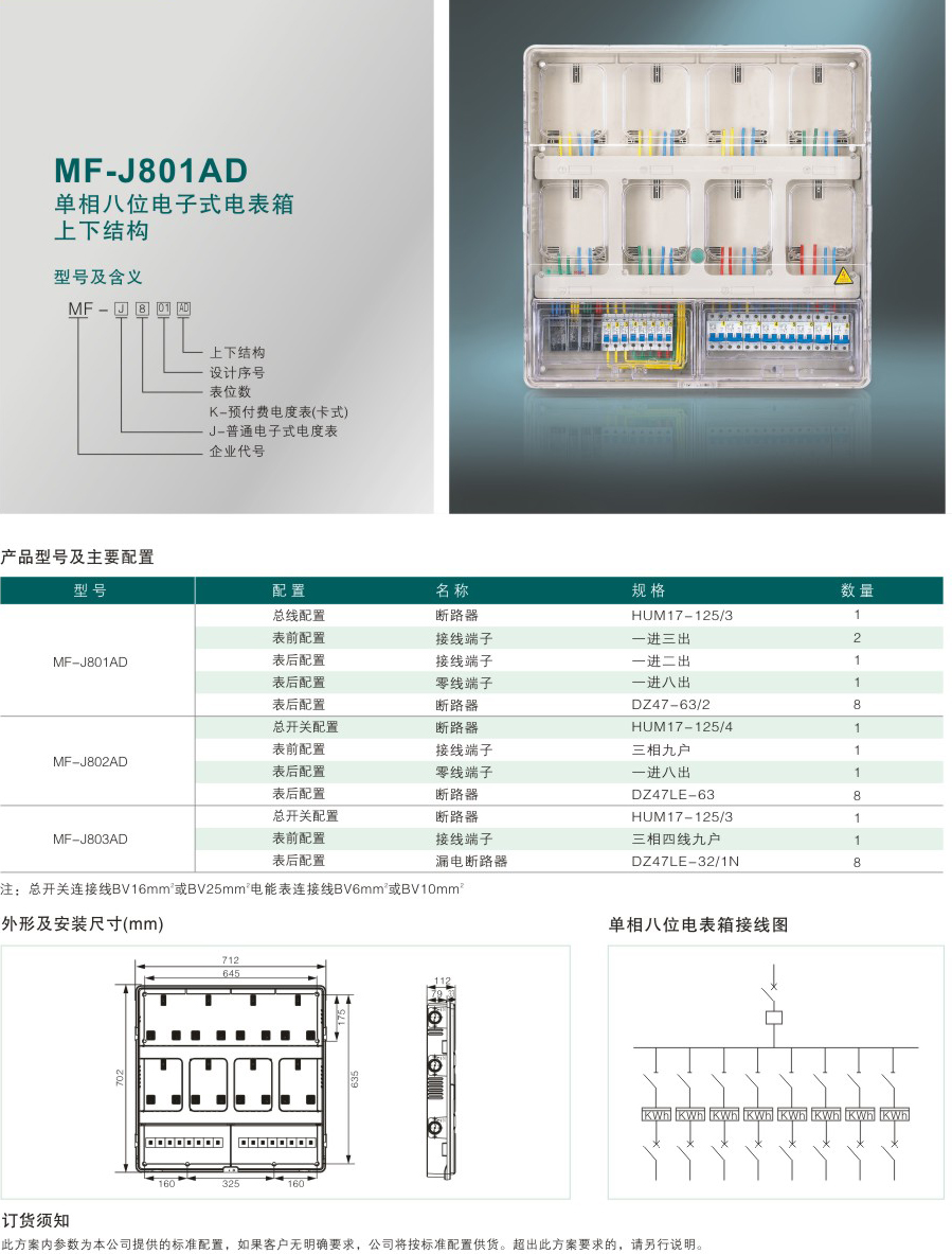 MF-J801AD 單相八位電子式電表箱上下結(jié)構(gòu)